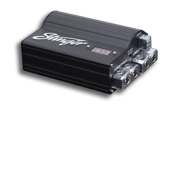 By combining the benefits of electrolytic and carbon capacitors, the SPC505 provides extremely fast cycling and high power along with tremendous power reserve. It accepts two 1/0 or 4 gauge inputs/outputs or a combination of one each, and contains 5 Farads of total capacitance. The SPC505 also delivers killer style with sleek black anodized aluminum housing and a red LED voltage display. Stinger's new and improved hybrid power capacitors are the premier power solution! The combination of high power electrolytic capacitors plus the power reserve of carbon capacitor offers unmatched performance that will never disappoint.