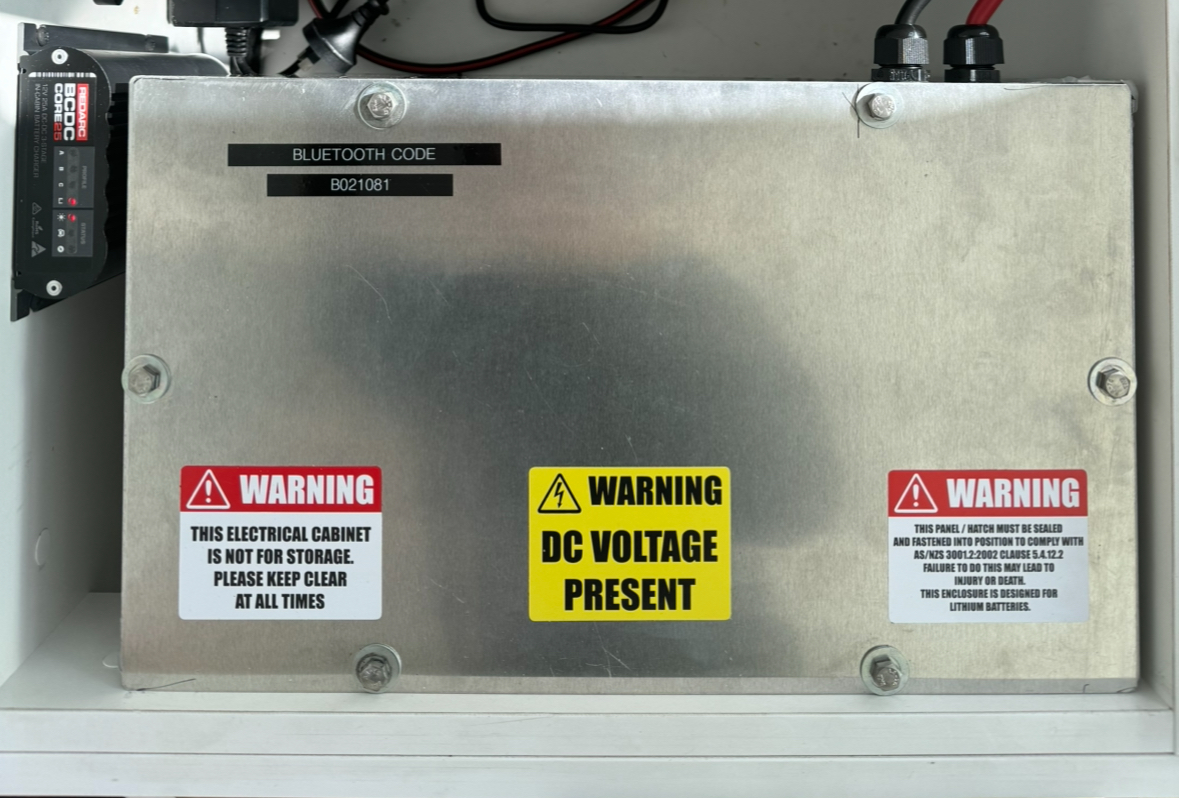 Custom designed & fabricated Lithium Battery Box Kit. Suitable for installation in Caravans, Campervans, Motorhomes & Camper Trailers, in accordance with new legislation requirements - standards AS/NZS 3001.2:2022 effective Nov 2023. Battery must be compliant with AS IEC 62619 & professional installation advisable to ensure all compliance requirements are met - POA