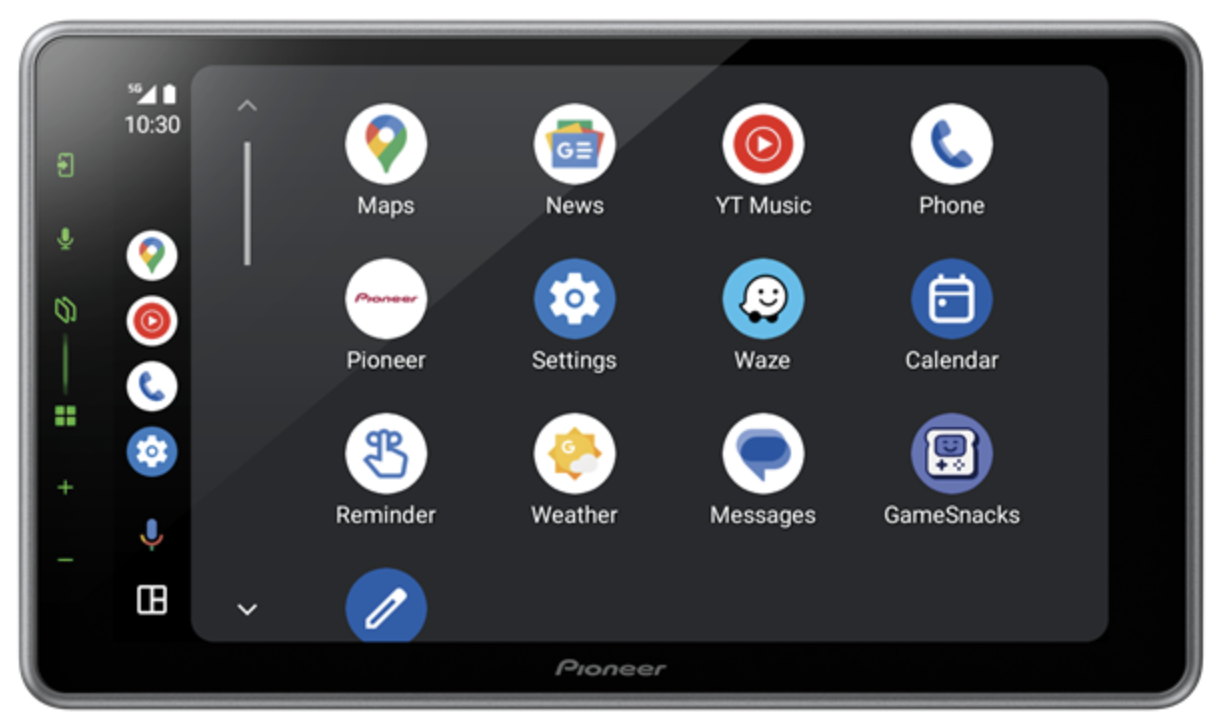 The 9″ capacitive touch display supports a WSVGA resolution (1,024 x 600 pixel). Utilising a high brightness display and high proximity panel construction allows for a bright easy to read display with wide viewing angle. This provides an expansive viewing experience that makes map reading easier, clarity of Apple CarPlay, Android Auto™ or Pioneer user interfaces clearer and also enables powerful and impressive video & still image display when compared to traditional WVGA screens.