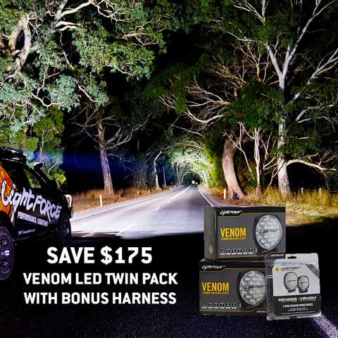 Lightforce Venom LED Driving Lights are now available in pairs with a bonus harness for a saving of $175!